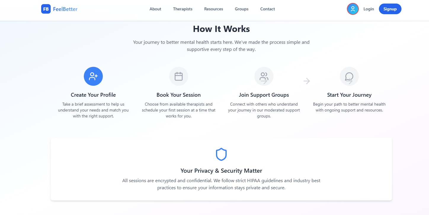 That's a full-stack mental health platform where user can login, signup anonymously and with their information too, ai can help find the perfect therapist, all kind of therapists in one place, help groups and resources
